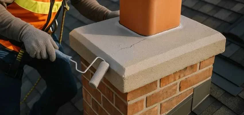 A cracked crown channels water into the flue and masonry below. We form a reinforced crown with the right overhang and drip edge, then apply penetrating sealers to reduce freeze thaw stress. Homes throughout Jefferson, Richmond Hill gain resilience and cleaner rooflines after storms.