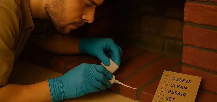Tiny cracks often start at the firebox opening or along the hearth edge where temperature swings are strongest. In homes across Jefferson, Richmond Hill, soot and heat slip through those hairlines, softening old adhesives and staining the substrate. What looks like a cosmetic issue can turn into loose corners and chipped edges if it is not addressed.